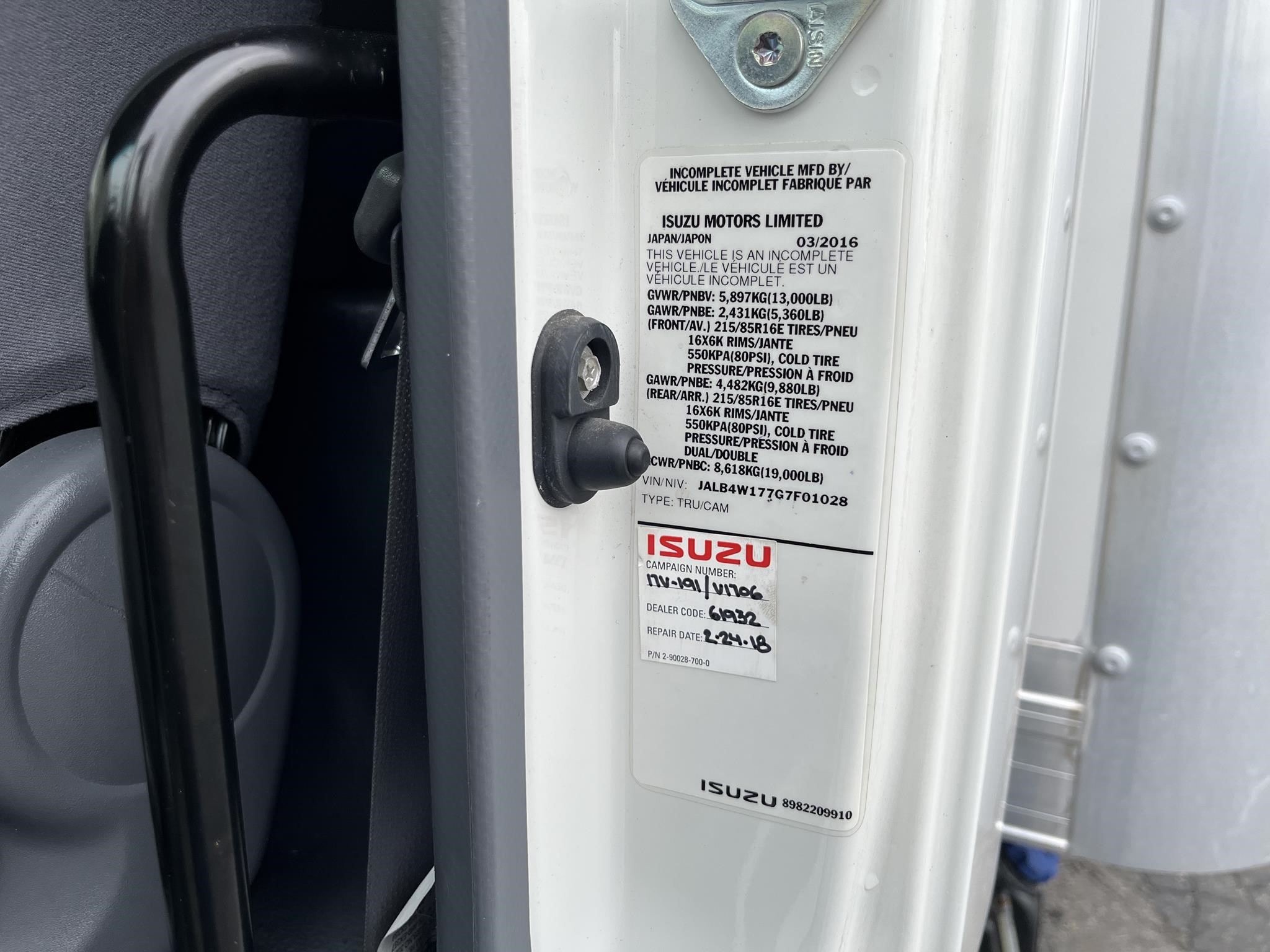 | Color: White | VINSerialNumber: JALB4W177G7F01028 |