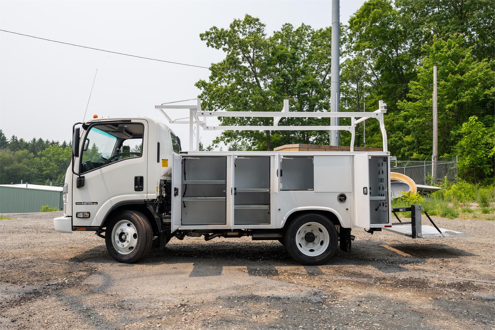 2024 Isuzu NPR HD Gas 11′ Open Service Body Mechanic / Tool Truck with Liftgate. On the ground and ready to roll! NO CDL REQUIRED.