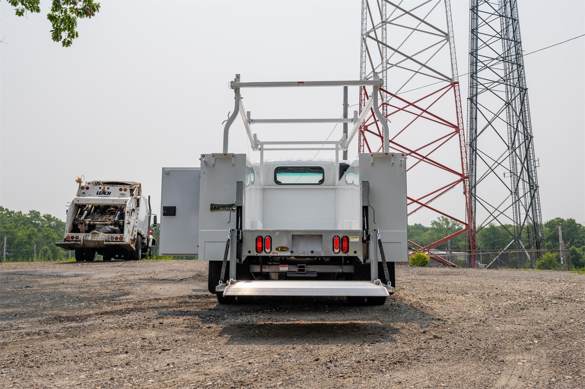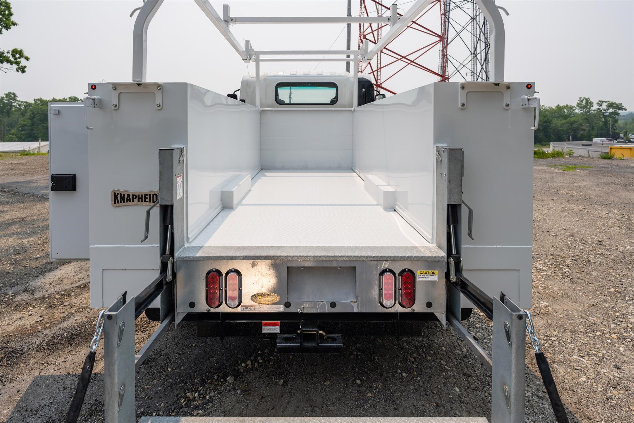 Body: Knapheide Open Steel Service Body. Maxon C2 1,300LB Liftgate. Compartment Lighting. Adjustable Shelving. Remote Locks. Hitch Receiver w/ 7 Wire Plug. Material Rack. 14-Gauge, 2 Sided, A-40 Galvanneal Steel Shell.