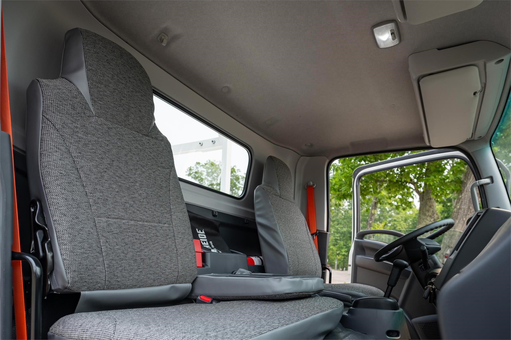 Features: 3-Person Bench Seating. LED Lighting. Chrome Grill. Seat Coves. Power windows. Power locks. Heated Mirrors. AM/FM/CD/Aux/USB/Bluetooth Radio. Cruise control. High – Vis Seatbelts. Cupholders. Chock blocks. Fire extinguisher. Triangle kit.