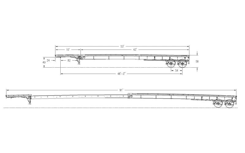 XL’s Flat Deck Extendables (FDE) feature a flat deck with no drop and the neck does not detach. This platform trailer extends to 81 feet long standard when fully extended. Constructed from steel, with 100k flange and 80k web, XL’s FDE is a durable option.